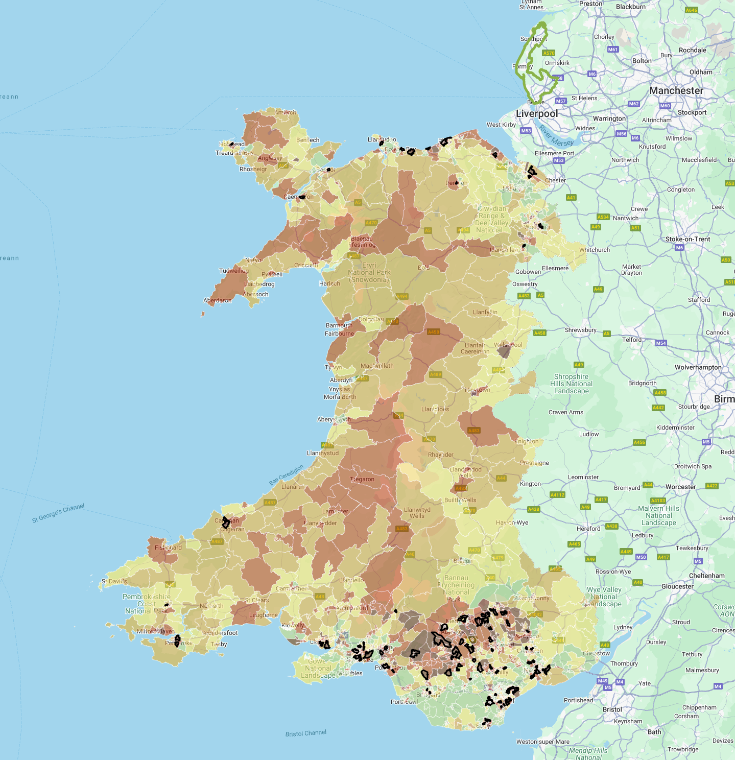 Smaller but still notable clusters also appear in parts of North Wales, often centered around coastal towns rather than rural hinterlands. This reinforces the pattern seen in previous WIMD releases: while deprivation exists across Wales, the most persistent forms tend to be concentrated in coastal, urban and post-industrial areas.