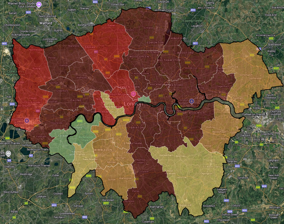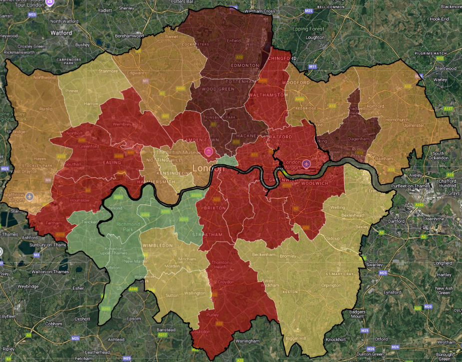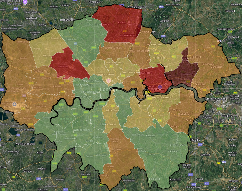 Four of the ten most deprived neighbourhoods are in Brent, including the most deprived LSOA in London: St Raphael’s, near Neasden Station.
