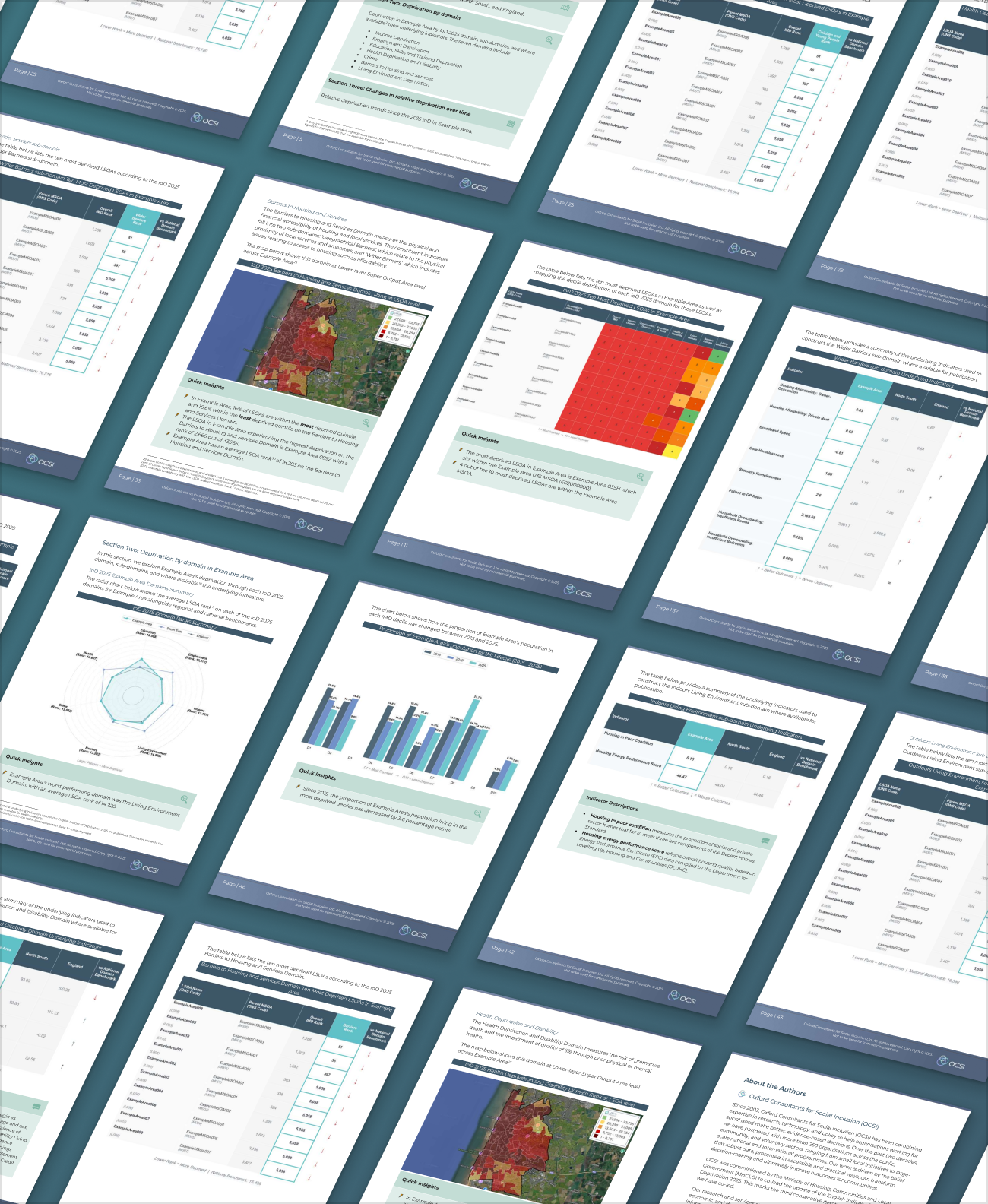 Following publication of IoD 2025, the IMD data can be explored using Local Insight, OCSI’s place-based data platform. This allows users to:
